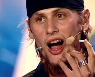 A urmat o demonstratie si mai tulburatoare: Ciprian a scos o lama de ras, pe care a mestecat-o, si, la fel ca si cu paharul de sticla, a scuipat bucatelele. A baut un pic de apa, dupa care si-a continuat numarul, cu doua ace de seringa pe care si le-a infipt in obraji. Multi dintre cei din sala au tipat de groaza, apoi l-au aplaudat.